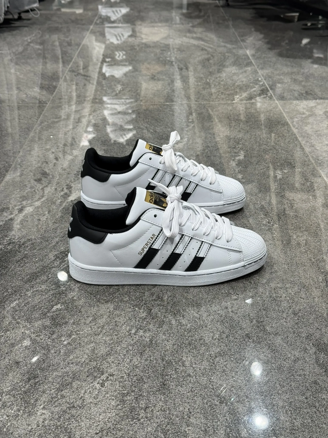 Adidas Süperstar Çift Logo Beyaz Siyah Detaylı