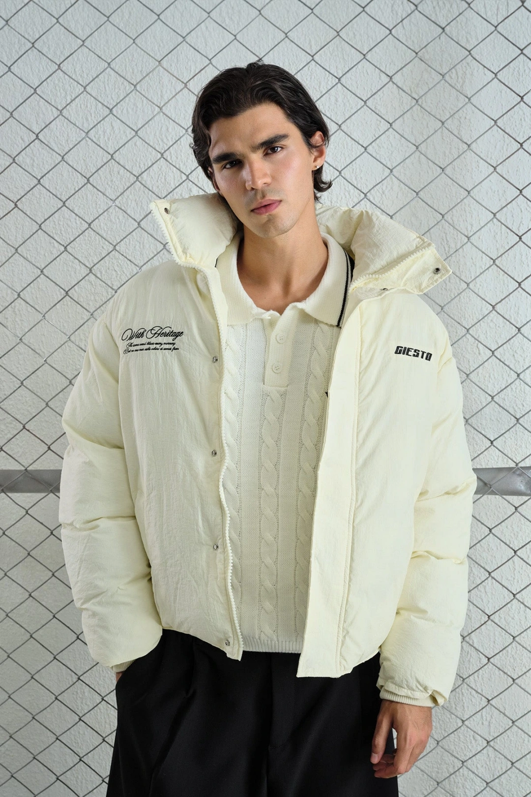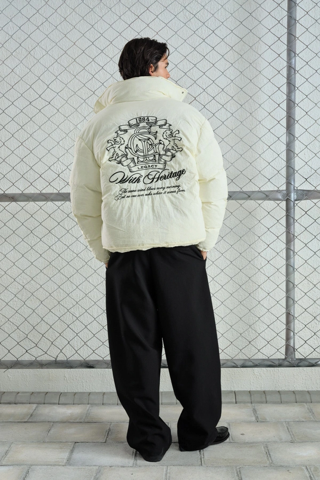 Gies Nakışlı Ekru Şişme Mont