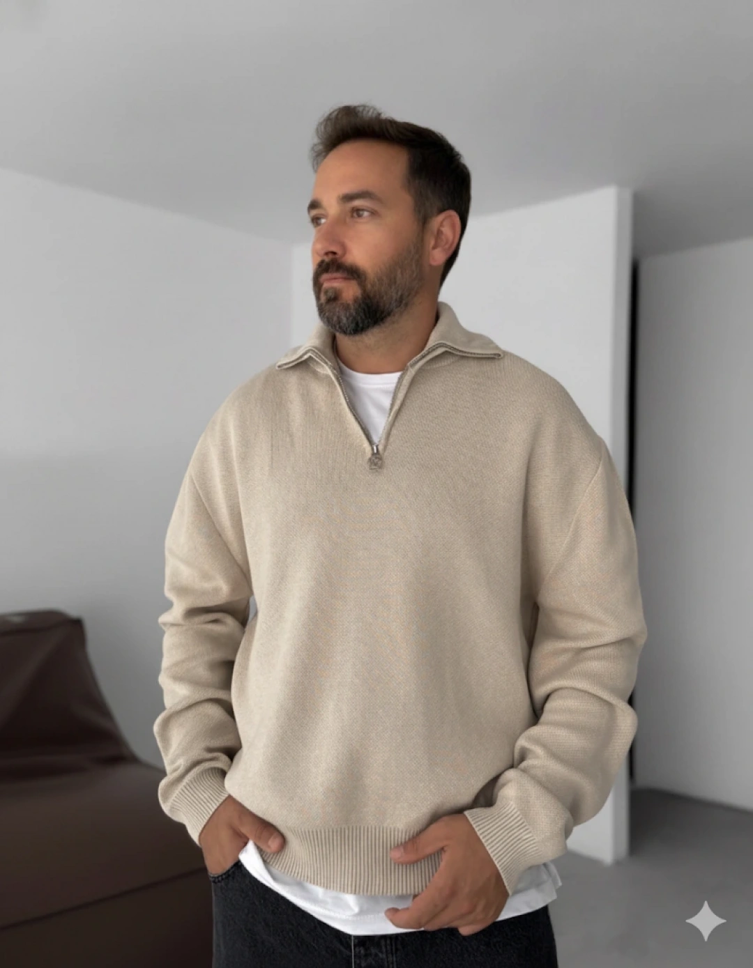 Giesto Açık Gri Yarım Fermuarlı Triko