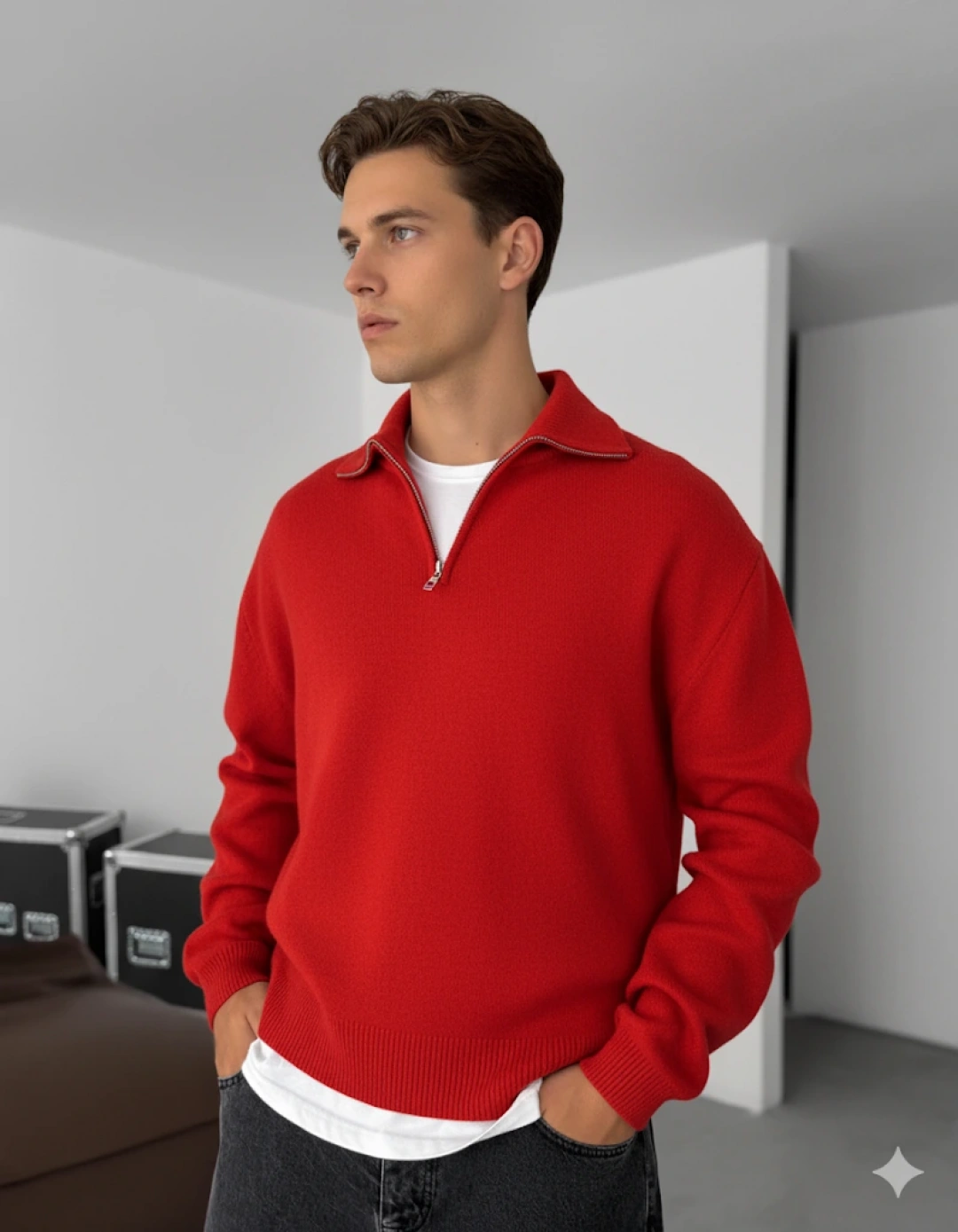 Giesto Kırmızı Yarım Fermuarlı Triko
