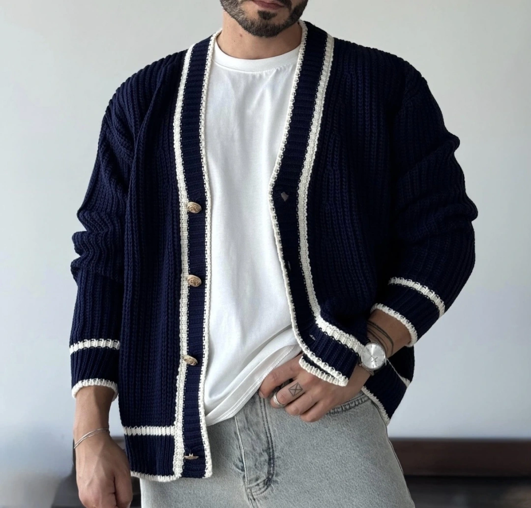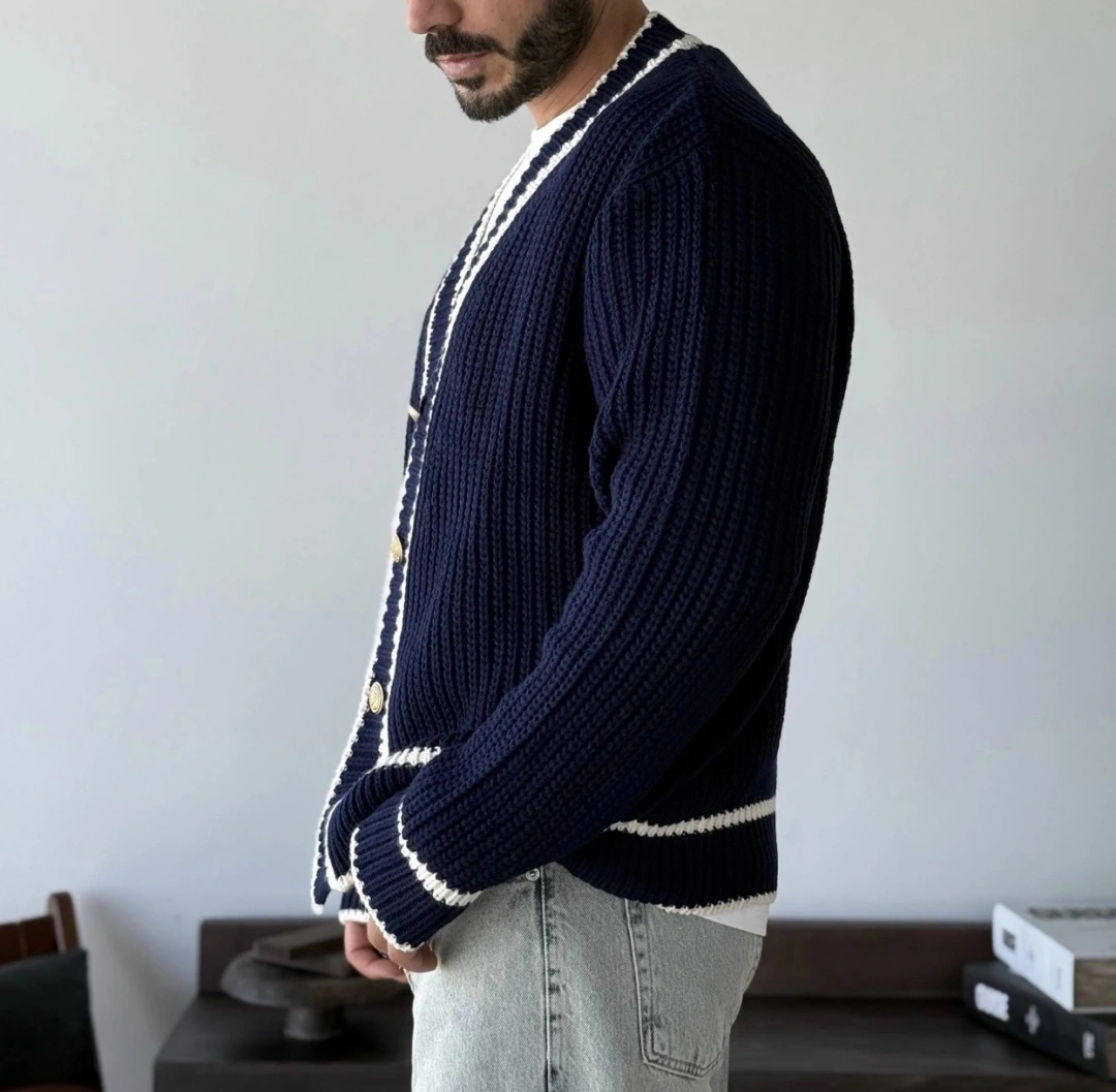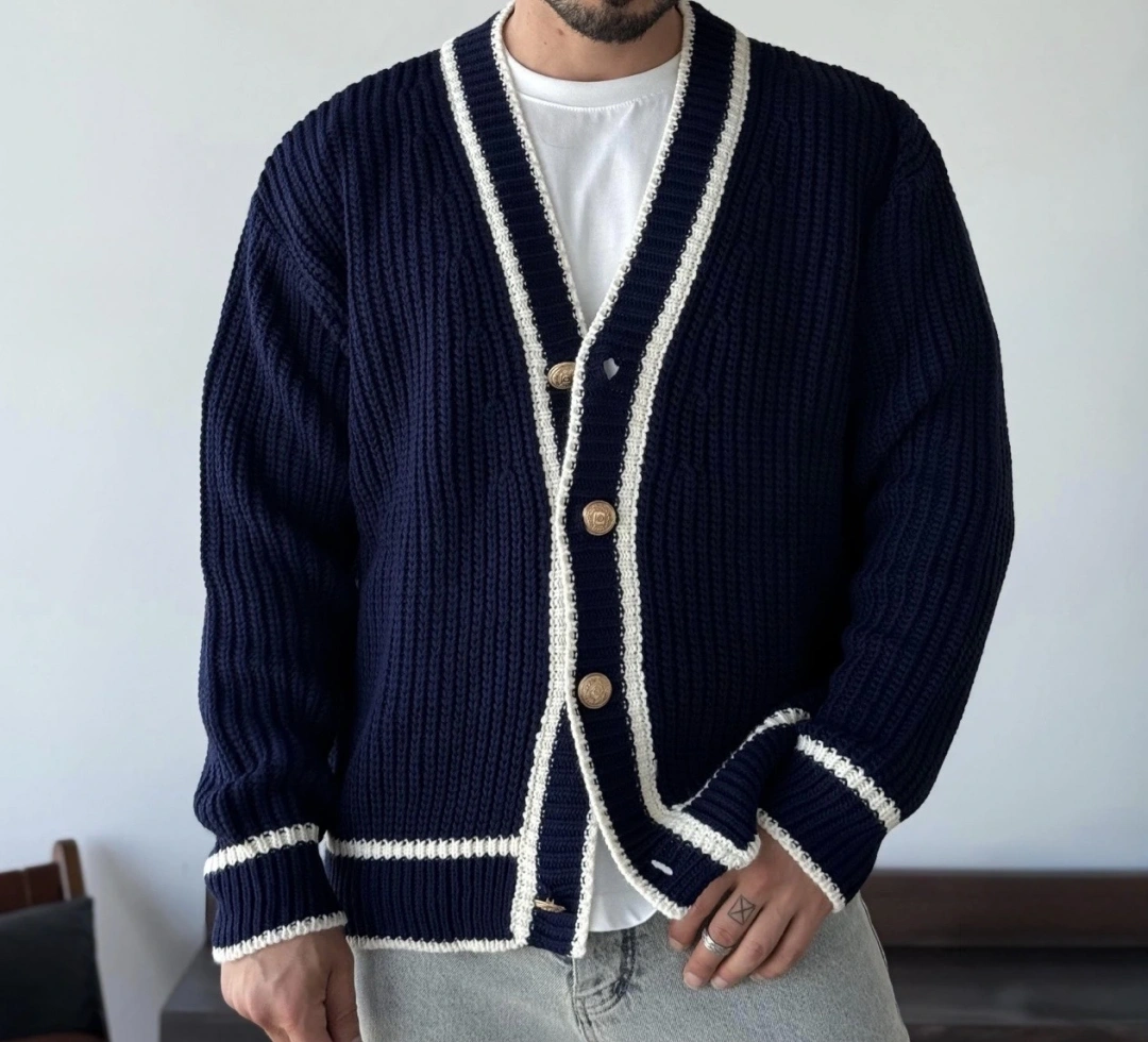 Gold Düğmeli Lacivert Hırka