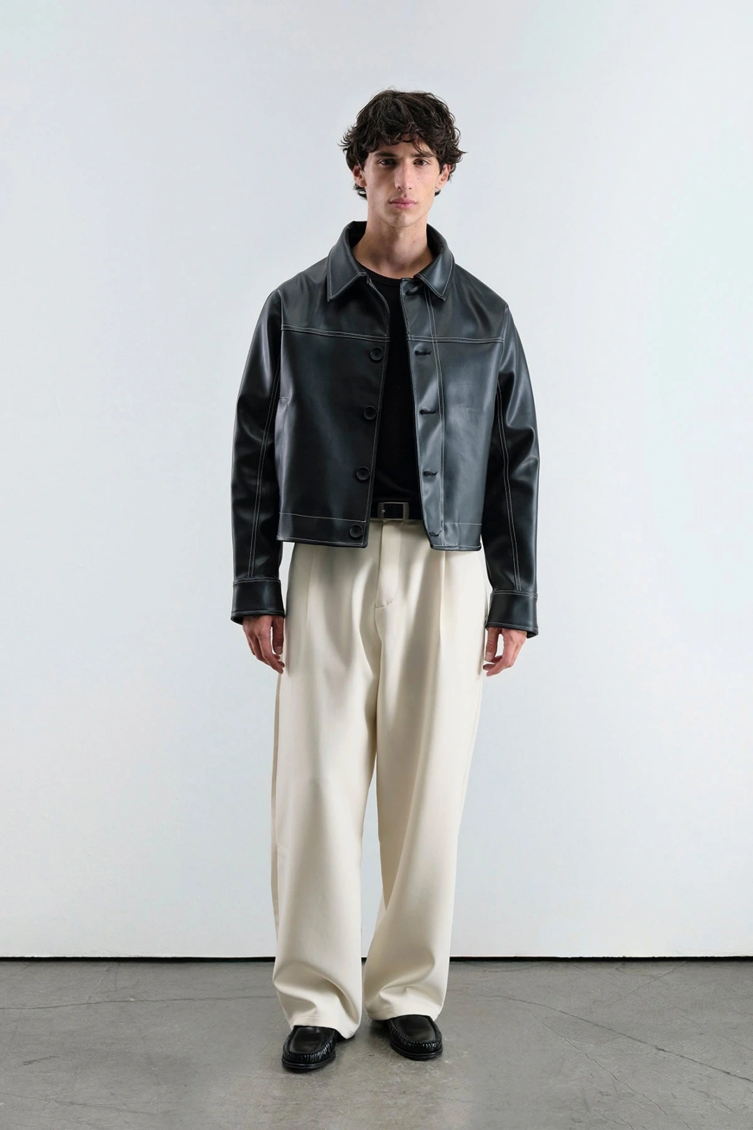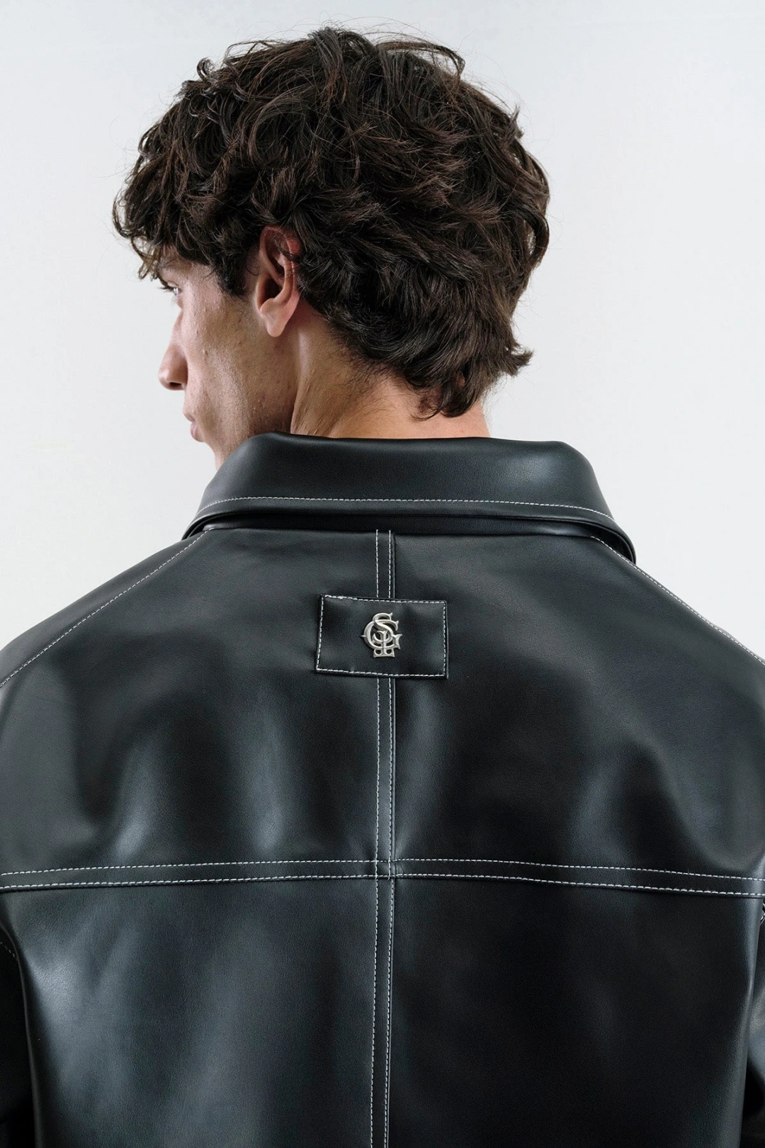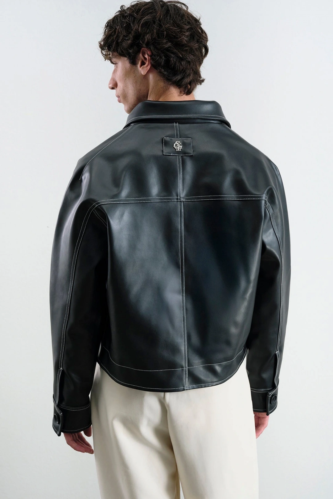 Kontrast Siyah Dikiş Detaylı Deri Ceket