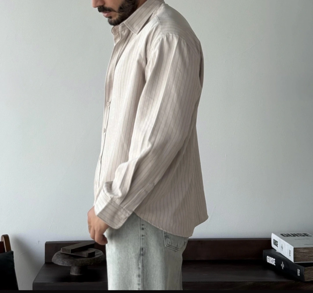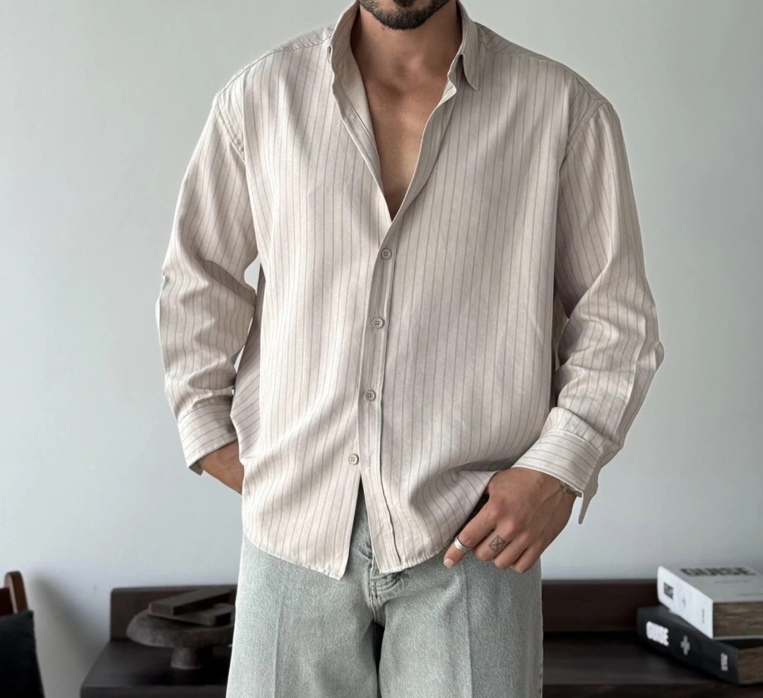 Marco Çizgili Modal Bej Gömlek