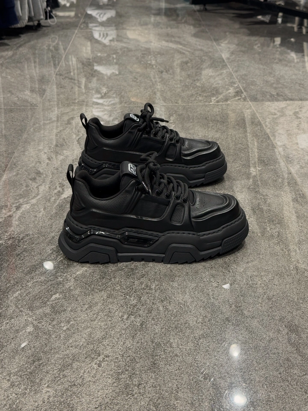 Marco Siyah Deri Yüksek Taban Tasarımlı Spor Ayakkabı