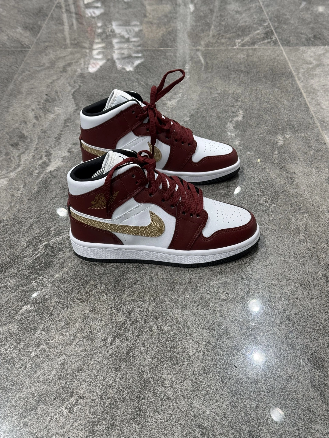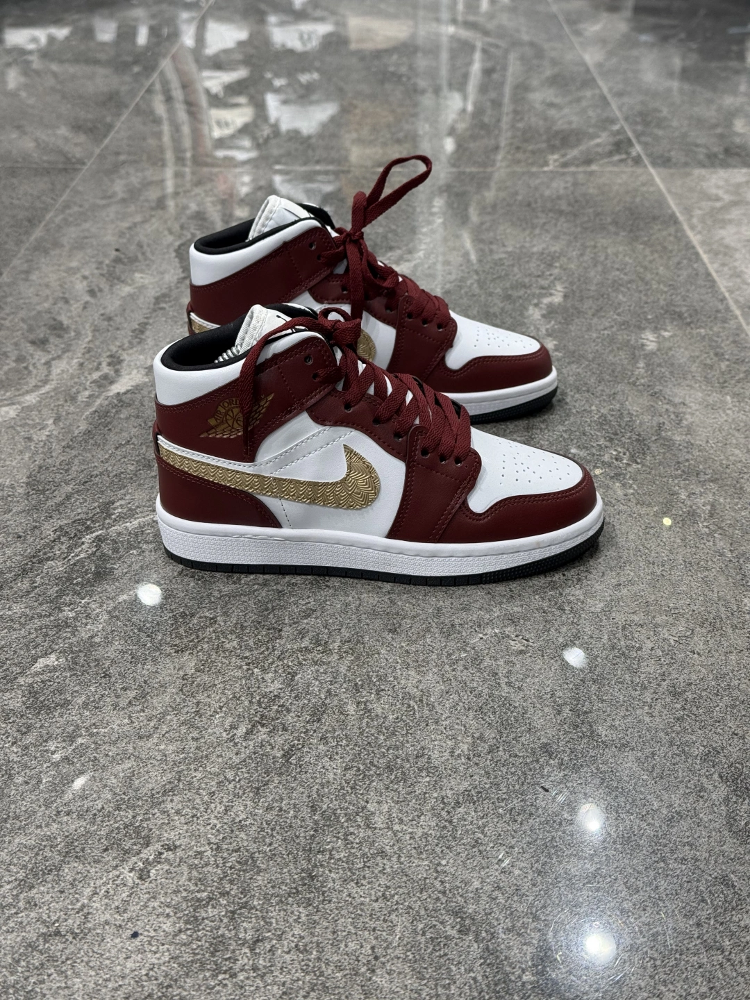 Nıke Air Jordan 1 Low Bilekli Bordo Beyaz Altın Detaylı