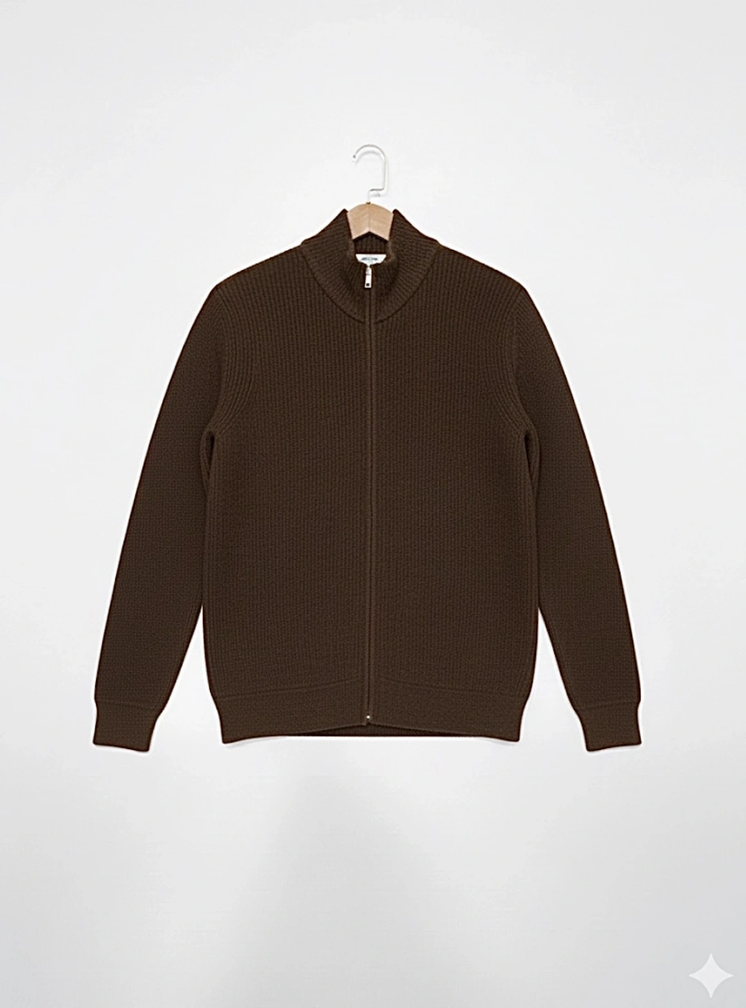 Yün Karışımlı Fermuarlı Kahve Hırka