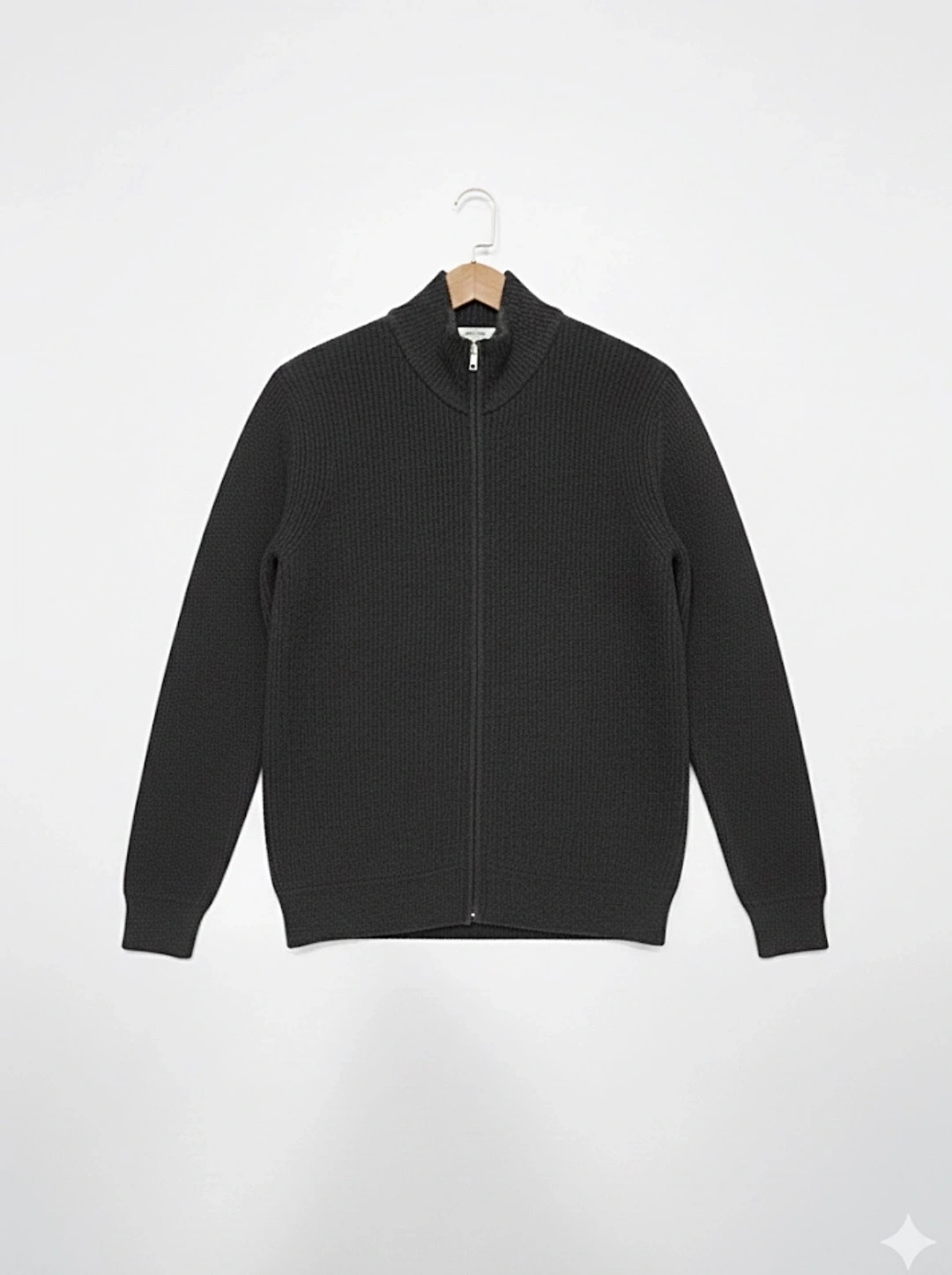 Yün Karışımlı Fermuarlı Siyah Hırka